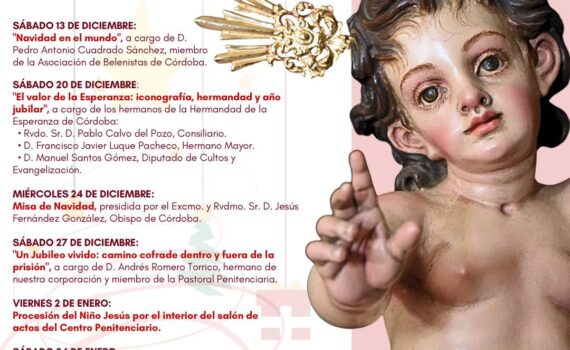 Como ya es tradición, nuestra hermandad, en colaboración con la Pastoral Penitenciaria, organiza una serie de actos muy especiales con los que deseamos llevar el espíritu de la Navidad a quienes más lo necesitan. Sábado 13 de diciembre “Navidad en el mundo” A cargo de D. Pedro Antonio Cuadrado Sánchez,