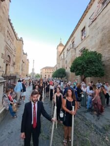 Aquellos hermanos que quieran participar en dicha procesión, deberán comunicarlo previamente a través de la solicitud que se incluye más abajo, y dicho día acudirán, a las 19:30 horas al Altar que este año instalará la Hermandad en la Calle Blanco Belmonte N.º 3 (Convento de las Siervas de María) para recoger el cirio. Los hermanos habrán de guardar durante la procesión la compostura, orden y seriedad que el acto requiere, debiendo vestir traje oscuro, y portar la medalla de la Hermandad.